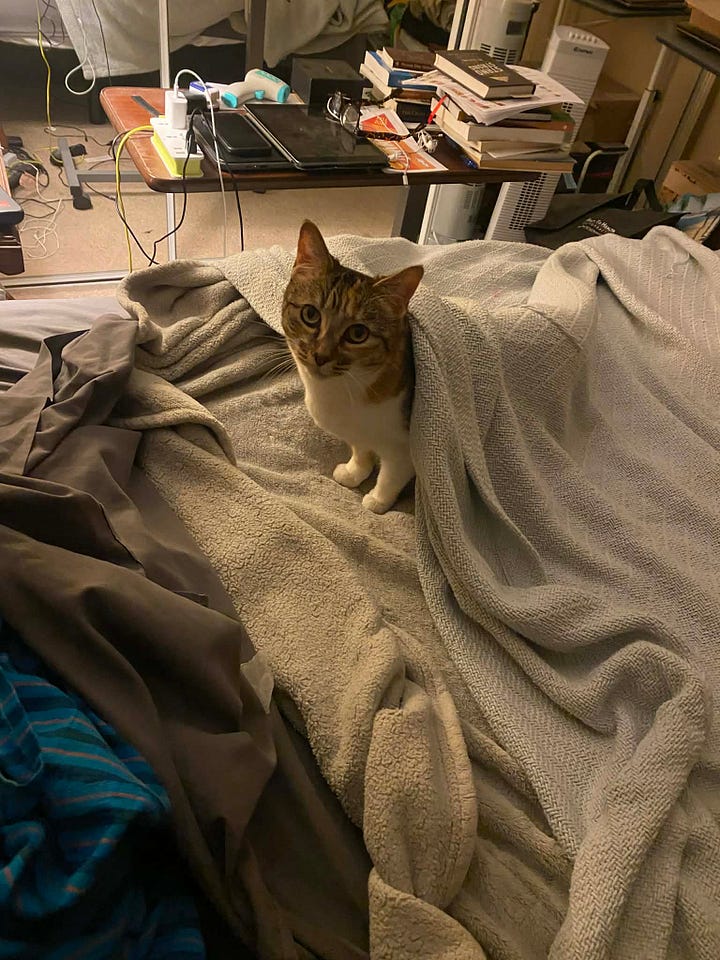 Need help fixing the bed? Paddy is there for you. Need someone to wake you up early? Paddy can help with that. Want company in the middle of the night? Paddy is ready for pats and scratches anytime.